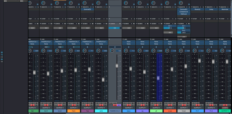 ミックスを始める前にまずは送られてきたファイルを最初に読み込みますが、その時に名前の前に数字が付いていたりするので、そのトラック名をまずは分かりやすい名前に変えるのと、楽器のパートごとに自分で使いやすいようにトラックを並べ直すという作業をします。