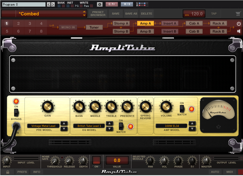 そして、もう一つは、今回新たに搭載された、IK Multimediaのギターやベース用のアンプやエフェクトソフトAmpliTube Metalも大きいですね。Metalという名前がついていますが、Mesa/BoogieやMarshallなどハイゲインのアンプや各種キャビネット、エフェクトを搭載しており、メタルだけでなく汎用的に色んなジャンルの曲に使えます。
