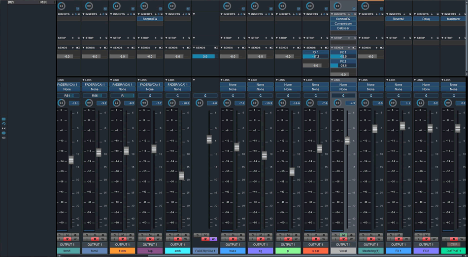ボーカルにリバーブやディレイなどの空間系のエフェクトをかけますが、これはボーカルのトラックにそのままリバーブとかをインサートするのではなく、別にFXトラックを作って、FXのセンドリターンで使うことが多いです。