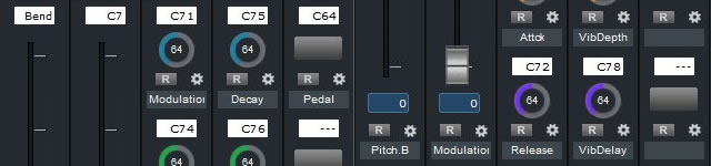 MIDIトラックのオートメーションを容易にするVコントローラ