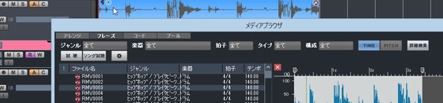 AUDIOフレーズデータ以外のAUDIOファイルや、録音したAUDIOデータもテンポストレッチ・キーチェンジが可能