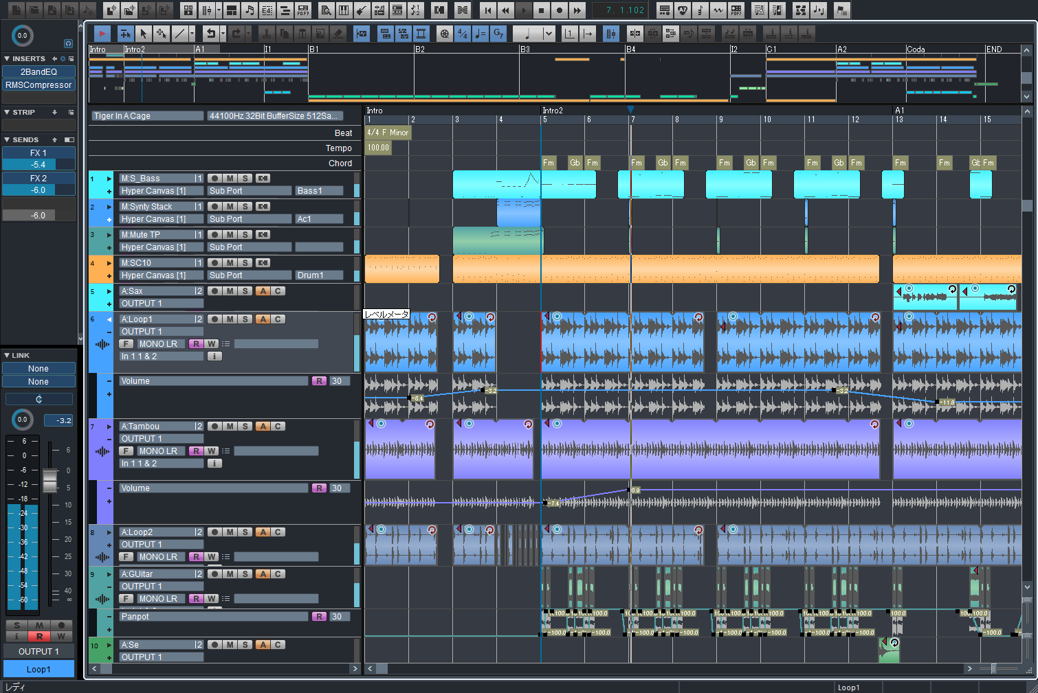 、VSTi(インストゥルメント)、ReWireトラックを装備。
