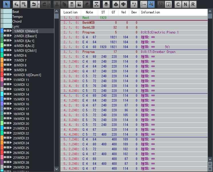 入力済みの各種MIDIコントロールデータにフィルターを掛けての編集や、各種コントロールデータを入力するショートカットを多数サポート、RPN/NRPNデータの情報も表示します。