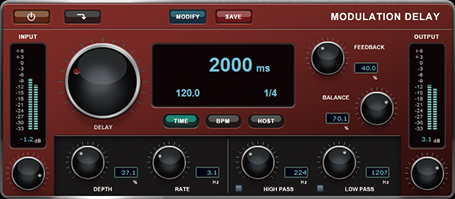 サウンドにディレイ(エコー)効果をプラスします。ディレイタイムをLFOで変調させ、フランジャーやコーラスエフェクト、テープエコーのような効果も与えられます。