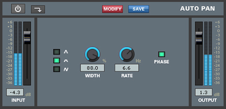 ステレオサウンドに周期的な揺らぎをプラスして、定位を左右に変化させます。