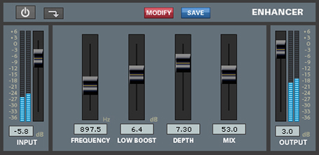 ステレオサウンドに倍音成分を追加し、左右の空間的広がりを付けます。