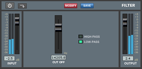 低い周波数の信号をカットするHIGH-PASSフィルターと、高い周波数の信号をカットするLOW-PASSフィルターが搭載されています。
