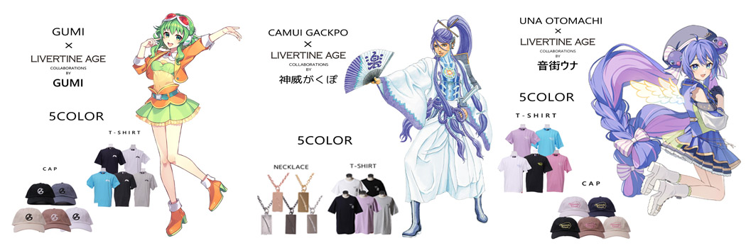 2026.01.22 <予約開始> LIVERTINE AGE × 神威がくぽ・GUMI・音街ウナ グッズ Tweet みなさん、こんにちは! アパレルブランドLIVERTINE AGEさんとのコラボアイテムが登場です。派手すぎないので普段使いでもオシャレに決まります。 ◎予約期間:2026年2月24日23時59分まで ■神威がくぽ くわしくは こちら ■GUMI くわしくは こちら ■音街ウナ くわしくは こちら 新登場のインタネスクエアKV(キービジュアル)グッズ販売開始! 前の記事