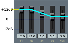 2KHz以上の高音域を強調したプリセットです。この帯域を強調することで音に華やかさ、鮮やかさを出すことができます。古いレコードなど、音がこもっているデータに対してこのプリセットをかけるとしゃきっとした音質になります。