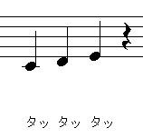 たとえば4分音符で「ドレミ」と入力したい場合、「タッタッタッ」と歯切れよく歌ってください。「ターターター」と続けて歌うと下のように1本につながってしまい,正しい判定結果を得ることができません。