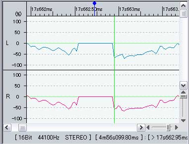DCオフセットは、パソコン内蔵のサウンド機能や、安価なサウンドカードを使用すると発生する場合があります。DCオフセット自体は、再生中継続して聴こえるものではなく、再生開始と停止時に「プツッ」というクリックのような音が発生します。