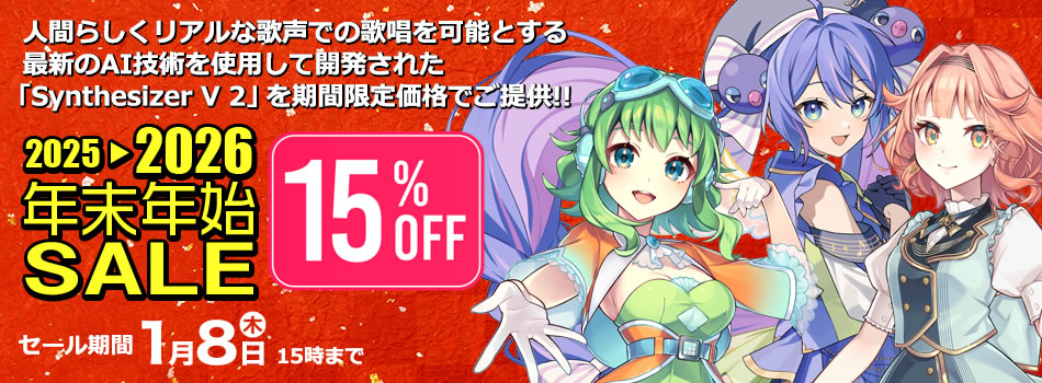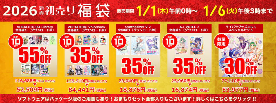 2026年1月1日午前0時よりボーカル作成ソフト「VOCALOID」「Synthesizer V2」シリーズやキャラクターグッズを数量限定でスペシャル価格にてご提供します。