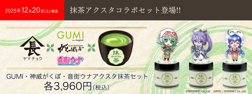 <新登場> 老舗茶問屋ヤマチョウからGUMI・神威がくぽ・音街ウナ抹茶アクスタコラボセット登場