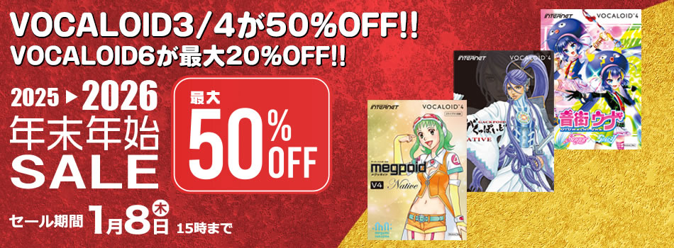 ボーカル作成ソフト「VOCALOIDシリーズ」のすぐに使えるダウンロード版の対象製品を、最大50%OFFのスペシャル価格にてご提供いたします!!