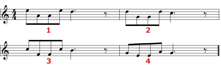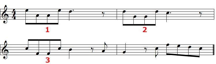 - 3小節目は1小節と全く同じaです。