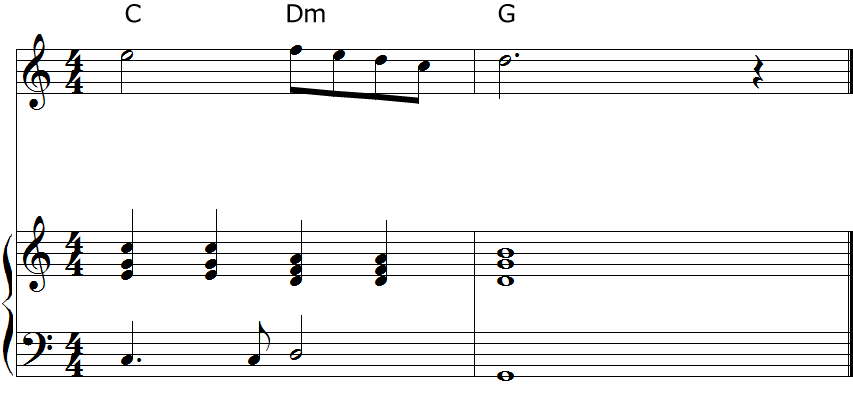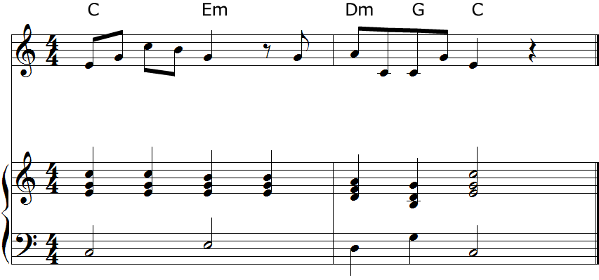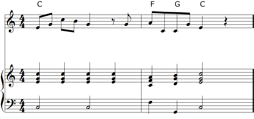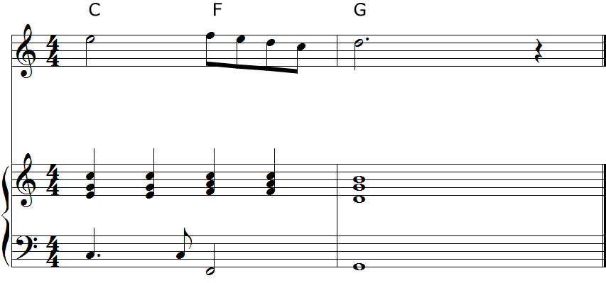 メロディに対してコードをつけるには、前回同様コードトーンと照らし合わせてコードを選びます。
