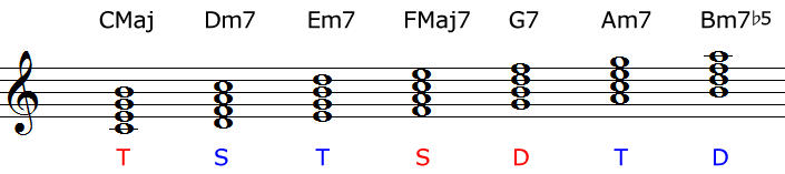 セブンスコードはトライアドに比べてコードトーンがひとつ多くなるわけです。