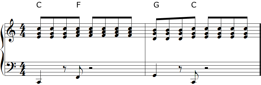 メロディ「ド」に対してIのトライアドを使った場合