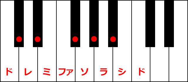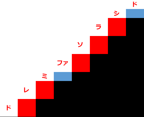 ピアノの鍵盤は白鍵と黒鍵がありますが、実はどこから始めてもこの階段の形さえ作ればドレミファソラシドに聞こえるのです。