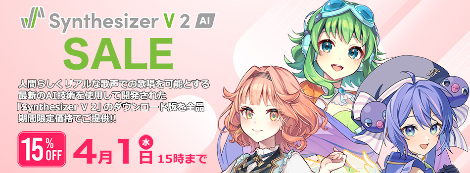 人間らしくリアルな歌声での歌唱を可能とする最新のAI技術を使用して開発された「Synthesizer V 2」を期間限定で