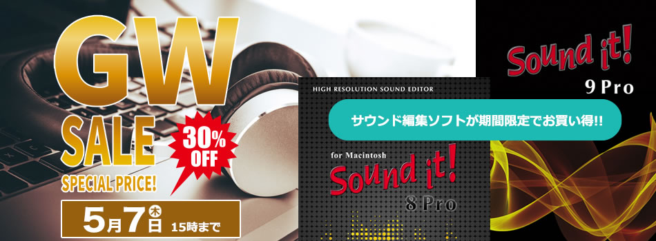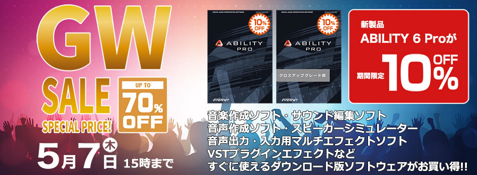 音楽作成ソフト、サウンド編集ソフト、音声作成ソフト、音声入力・出力用マルチエフェクトソフト、スピーカーシミュレーター、VSTプラグインエフェクトなど、すぐに使えるダウンロード版を最大70%OFFのスペシャル価格でご提供いたします!!