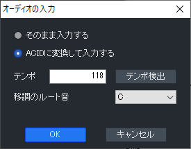また、すでに入力したオーディオファイルをACIDファイルに変換することも可能です。