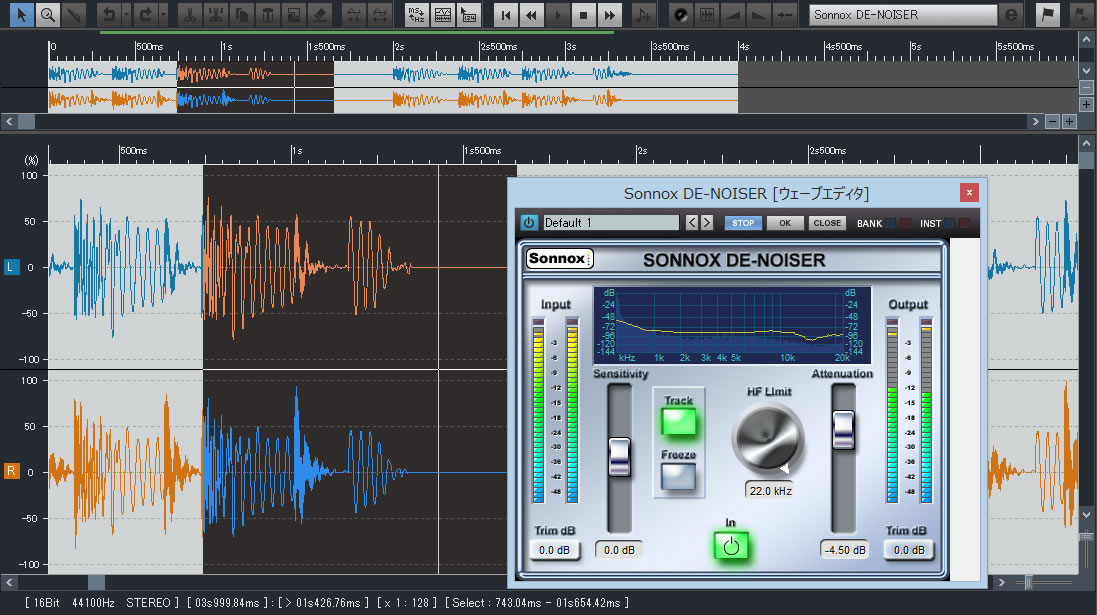 ウェーブエディタは、ミキサーのインサートエフェクト同様、VST3/2対応のプラグインエフェクトが使用できます。