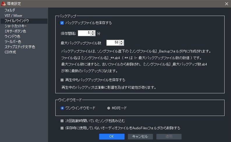 楽曲制作に専念できるように、VSTi(インストゥルメント)のパラメータも含め制作中の大切なプロジェクトファイルを、指定した時間の間隔で自動的にバックアップ保存。