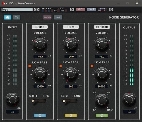 ホワイトノイズ / ピンクノイズ、ハムノイズ、レコードノイズを生成します。