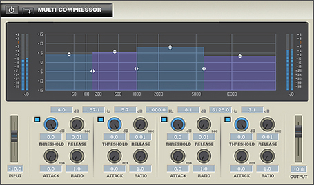 4つに分割された周波数帯域に対して個別にコンプレッサーをかけることができます。