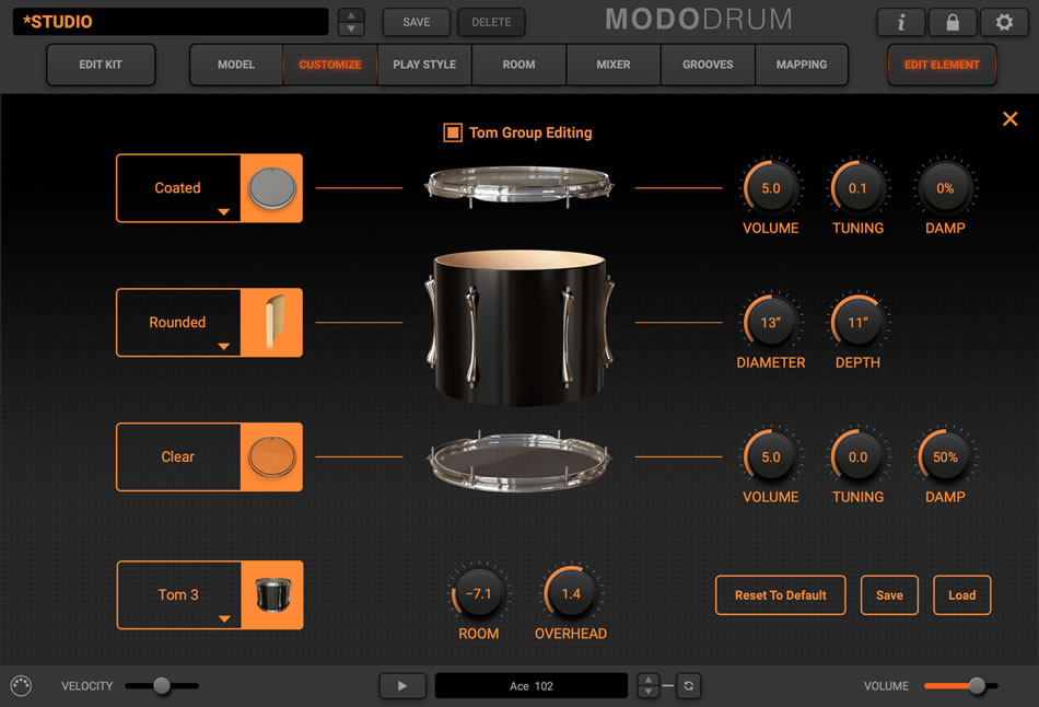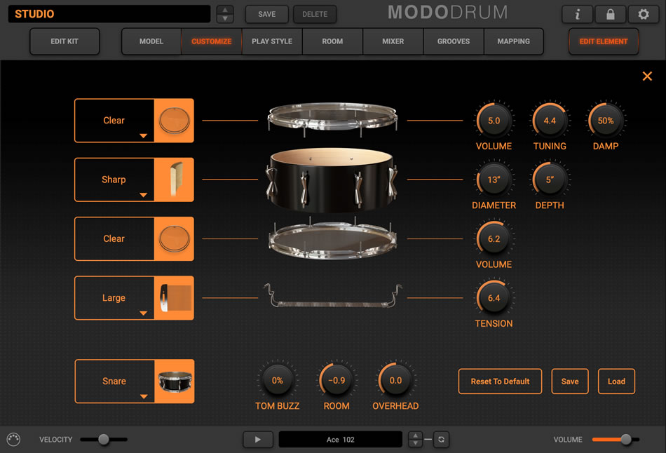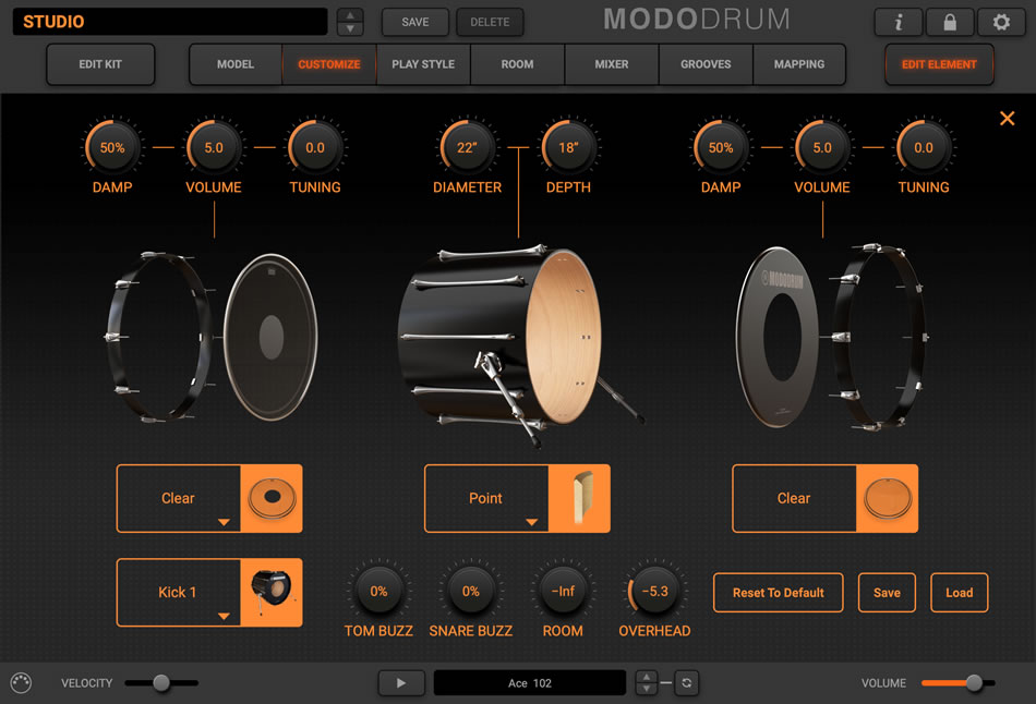 自由自在とも言えるMODO DRUMのカスタマイズ機能を駆使して、妥協のないドラム・キットを構築しましょう。