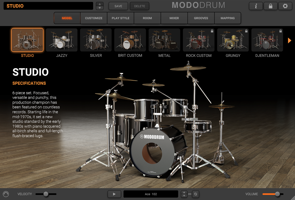 MODO DRUMは、従来のサンプリング方式のドラム音源とは異なり、IK独自のモーダル・シンセシスに基づくサウンド生成テクノロジーが採用され、最適化されたサウンド・エンジンを使用してドラム・トラックに新しい命を吹き込みます。