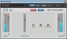 アタック検出、自己相関によるタイムストレッチ、ピッチシフトです。ドラム素材などのアタック感を残しつつ2度打ちなどを軽減することができます。 |