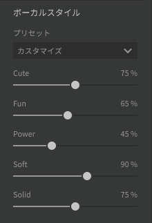 ボーカルスタイル:デフォルト / Cute / Fun / Power / Soft / Solid