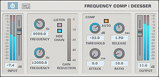 ボーカルに含まれる耳障りなサ行の歯擦音や高周波数の擦過音を減衰させます。