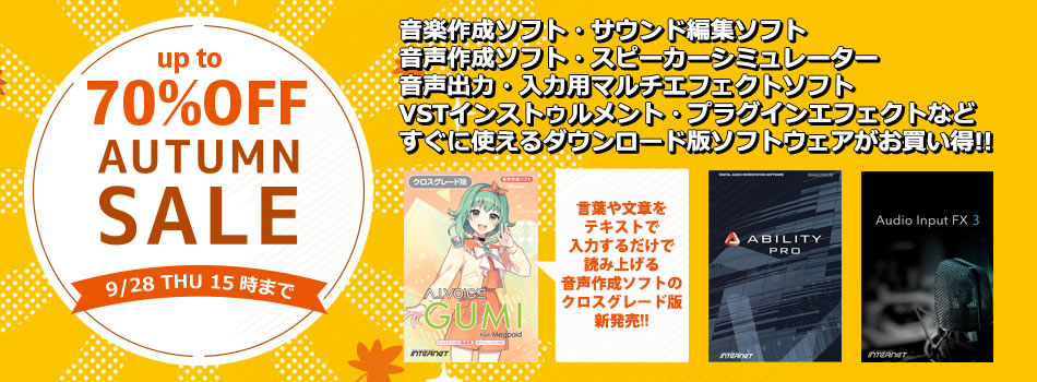 音楽作成・サウンド編集・ソフト音源(LinPlug)・音声入力用マルチエフェクトソフト(Audio Input FX 3)・音声出力用マルチエフェクト(PC Audio FX)・プラグインエフェクト(MS EQ COMP・F-REX・V MONITORなど)などを最大70%OFFのスペシャル価格でご提供。