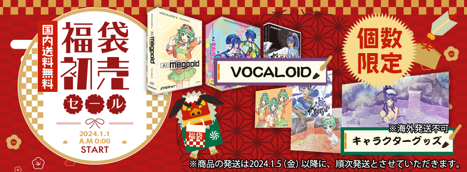 2024年1月1日午前0時よりボーカル作成ソフト「VOCALOIDシリーズ」やキャラクターグッズを数量限定で送料無料のスペシャル価格にてご提供します。