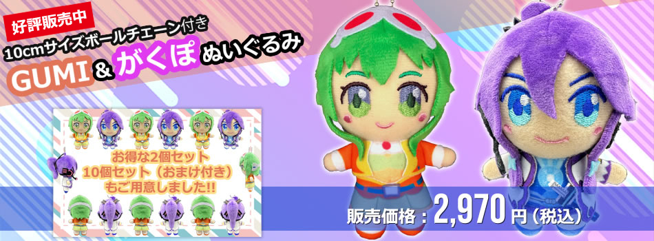 GUMIとがくぽのかわいい10cmボールチェーン付きぬいぐるみを好評販売中。お得な2個セットや10個セット(おまけ付き)もあります。限定数に達した時点で販売終了となります。