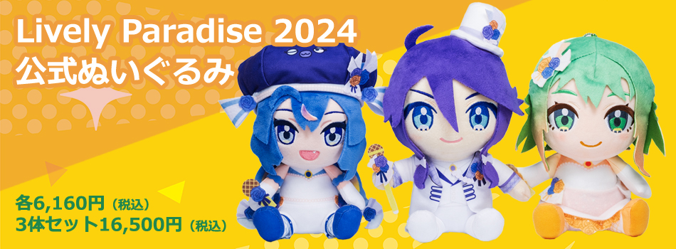 Lively Paradise 2024キービジュアル衣装での公式ぬいぐるみを好評販売中。限定数に達した時点で販売終了となります。