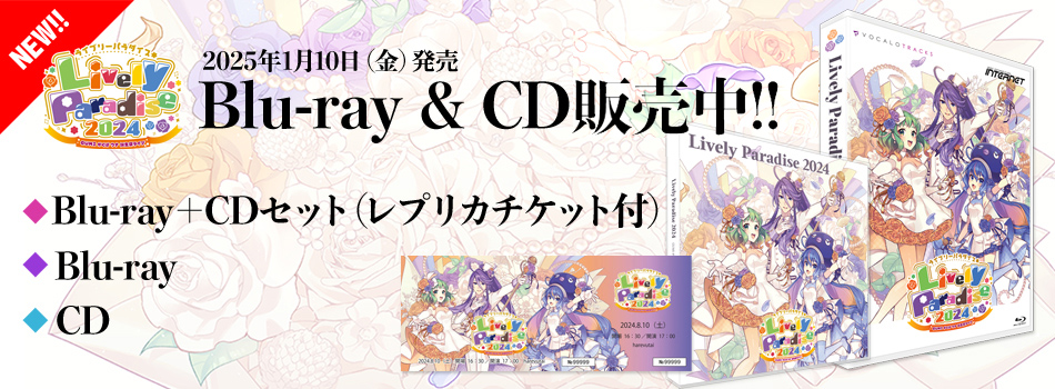 2024年8月10日開催のGUMI がくぽ ウナ 誕生祭ライブ「Lively Paradise 2024」を収録したBlu-ray(2枚組)、CD(2枚組)は只今好評販売中です。Blu-rayは、DISC1にライブ映像、DISC2にスクリーン映像を収録。