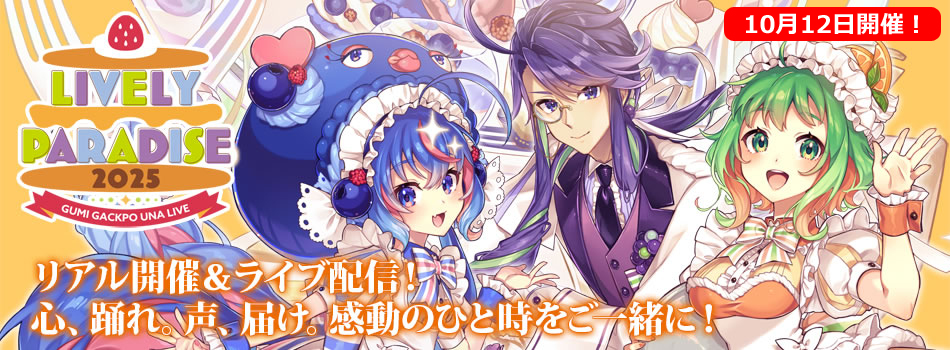 <キービジュアル完成> GUMI 神威がくぽ 音街ウナ 3Dライブステージ『Lively Paradise 2025』 クラウドファンディング