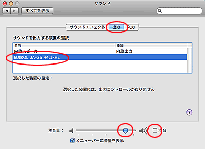 外付けオーディオインターフェース接続の場合 例)UA-25 ![サウンドの[出力]タブを開く](image/ap_mac05.gif)
