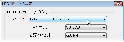 MIDI OUTポートのデバイス[ポート1]に、使用している音源(または、MIDIインターフェイス)のドライバ名が設定されていますか?